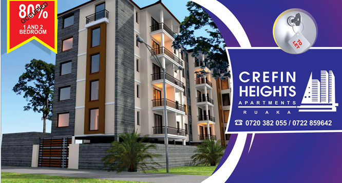 Crefin Height is a 5 Floor Twin Apartments situated in Ruaka, 10km from Nairobi City,…